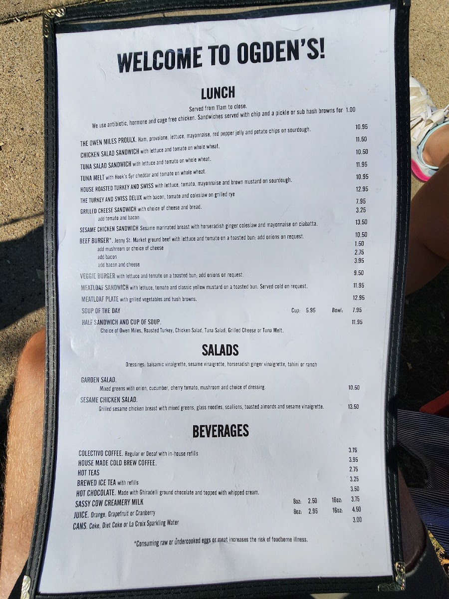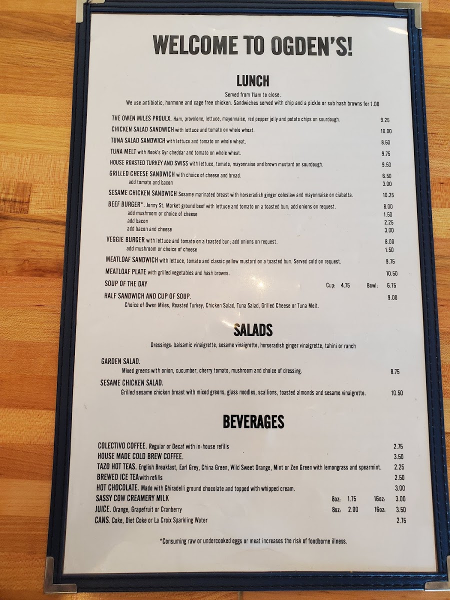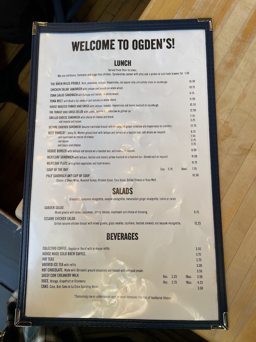 Choice of owen miles, roast turkey, chicken salad, tuna salad, grilled cheese or tuna melt